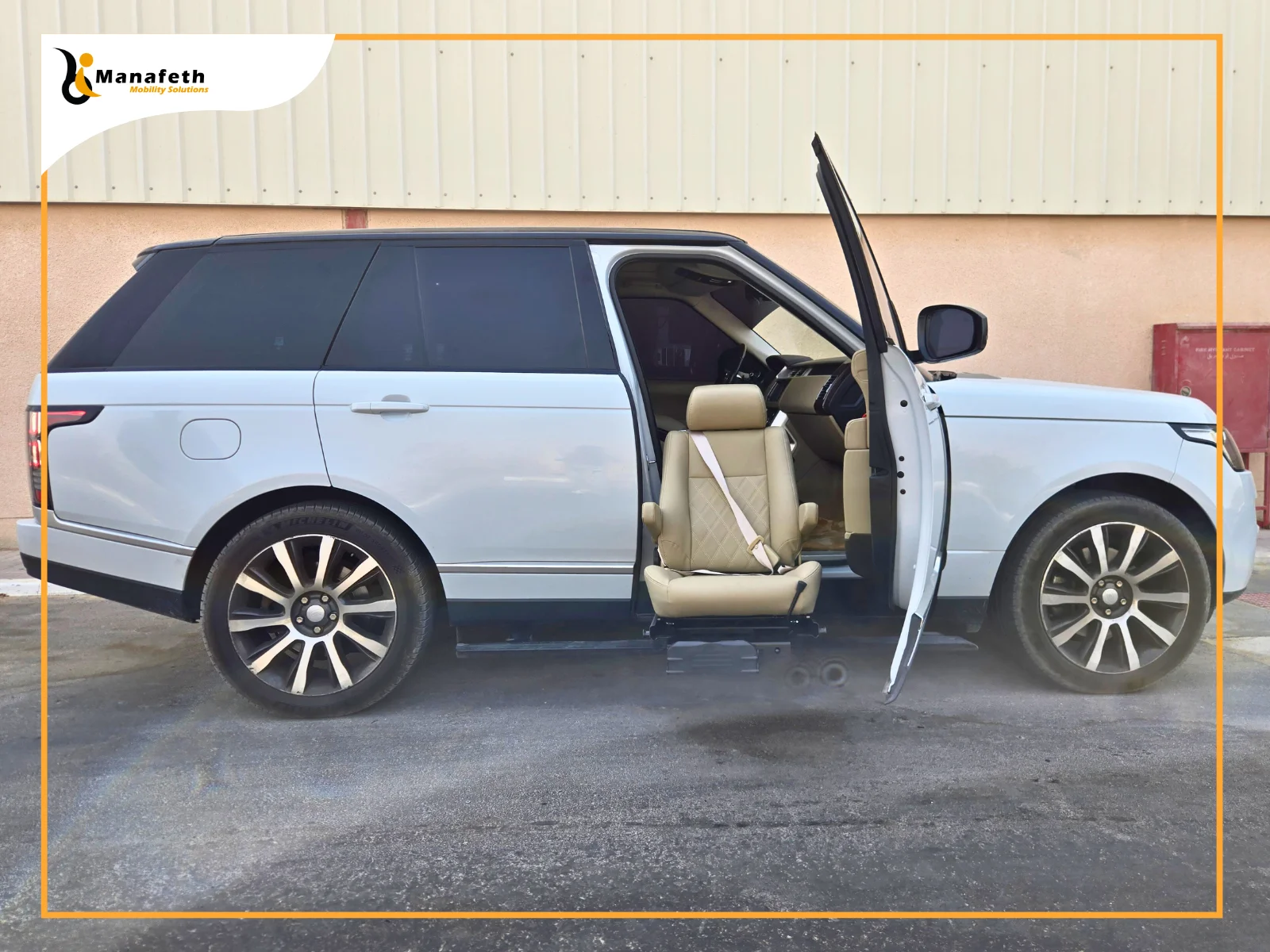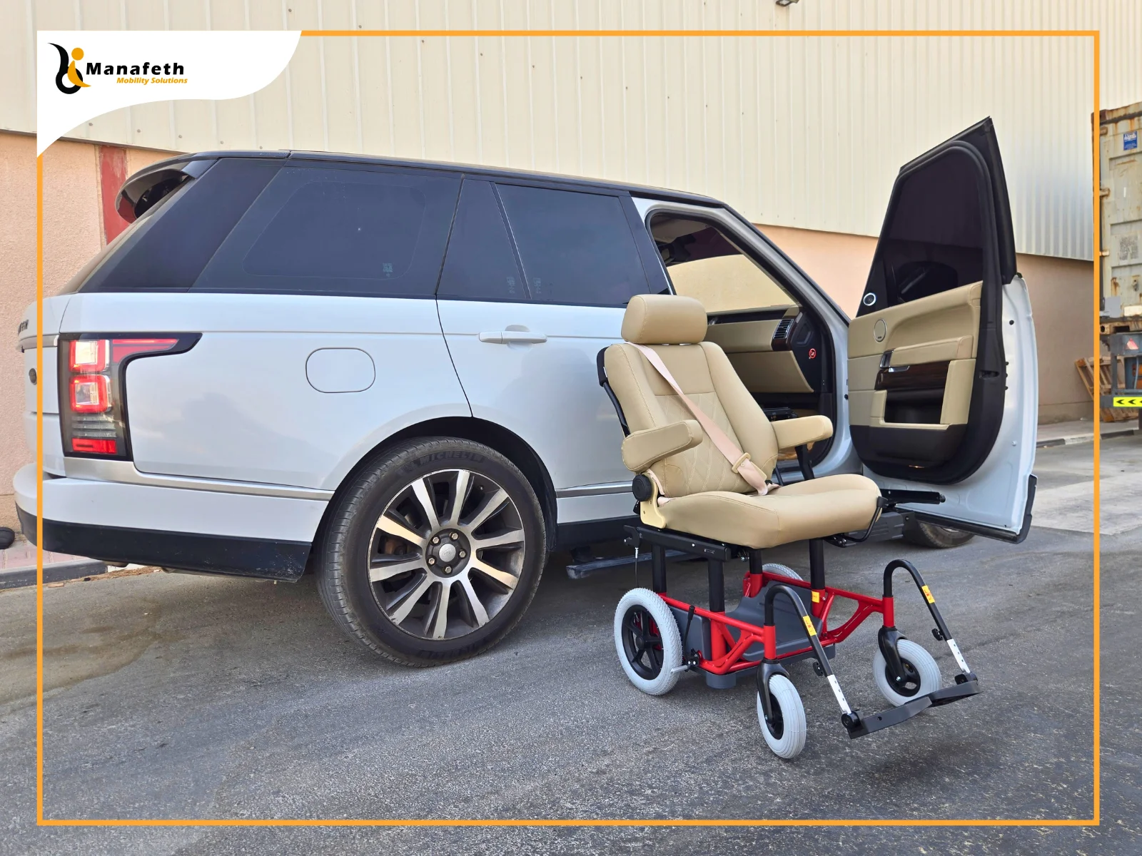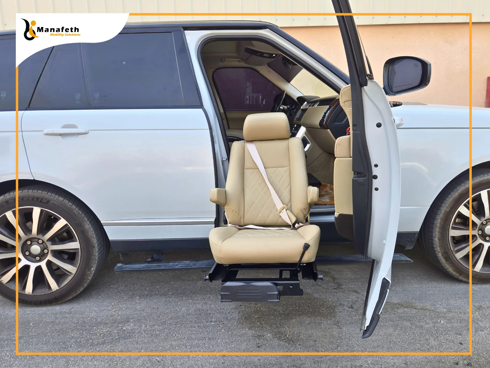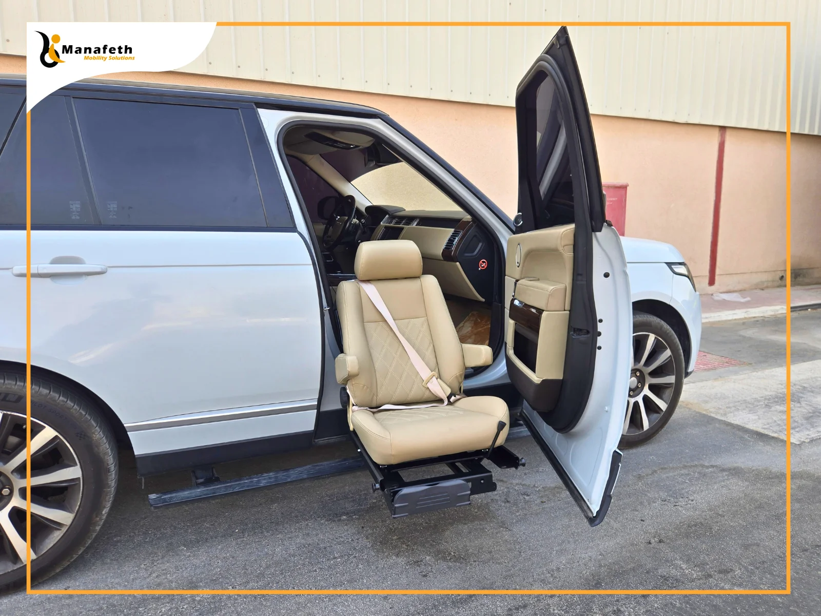 A woman had been struggling with a severe hip fracture. She required multiple surgeries to recover. Even after recovery, the severe pain made it difficult for her to get in and out of the Range Rover. Whenever they went out, she needed extra help from her family. His son wanted to make traveling easier for her. After exploring different options, he was suggested Manafeth Mobility Solutions through a friend for providing safe solutions. Last week, he contacted us and expressed his concern. After listening to him, we visited him. We analyzed his mother’s condition and assessed the SUV. After evaluating, we recommended the installation of a Turny Evo seat. His mother was satisfied with this solution, so we fitted our fully powered transfer seat in the Range Rover immediately. The mobility seat we installed can be fitted on either the driver’s or the passenger’s seat, depending on the users’ needs.