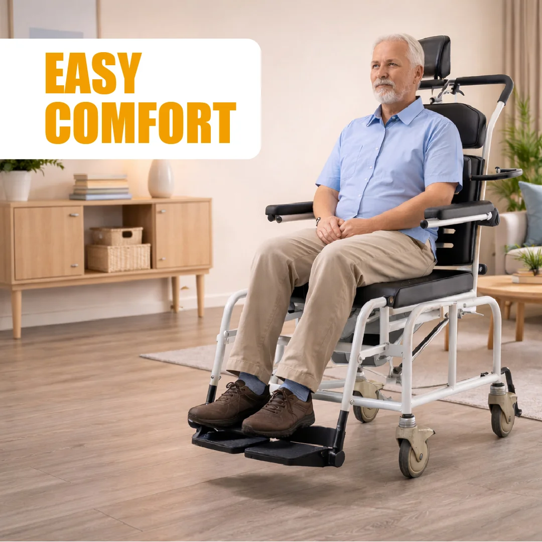 يوفر التصميم الملائم للنقل حلولاً آمنة للمقيمين ذوي المستويات الحركية المختلفة، ويغطي الاحتياجات التي تتراوح من صوان بجانب السرير إلى كرسي دش وصوان متنقل متعدد الوظائف. عند استخدامه ككرسي مرحاض، يمكن وضعه فوق مرحاض تقليدي أو استخدامه في وضع قائم بذاته.