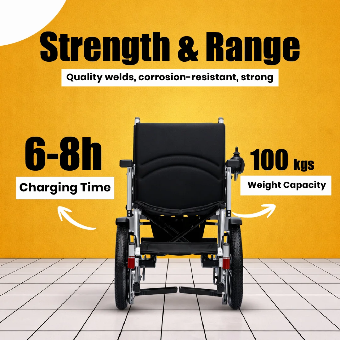 - قابلة للطي ويمكن حملها: يمكن طي هذه الكراسي الكهربائية يدويًا إلى أحجام مضغوطة للتخزين السهل وهي خفيفة الوزن لسهولة النقل.