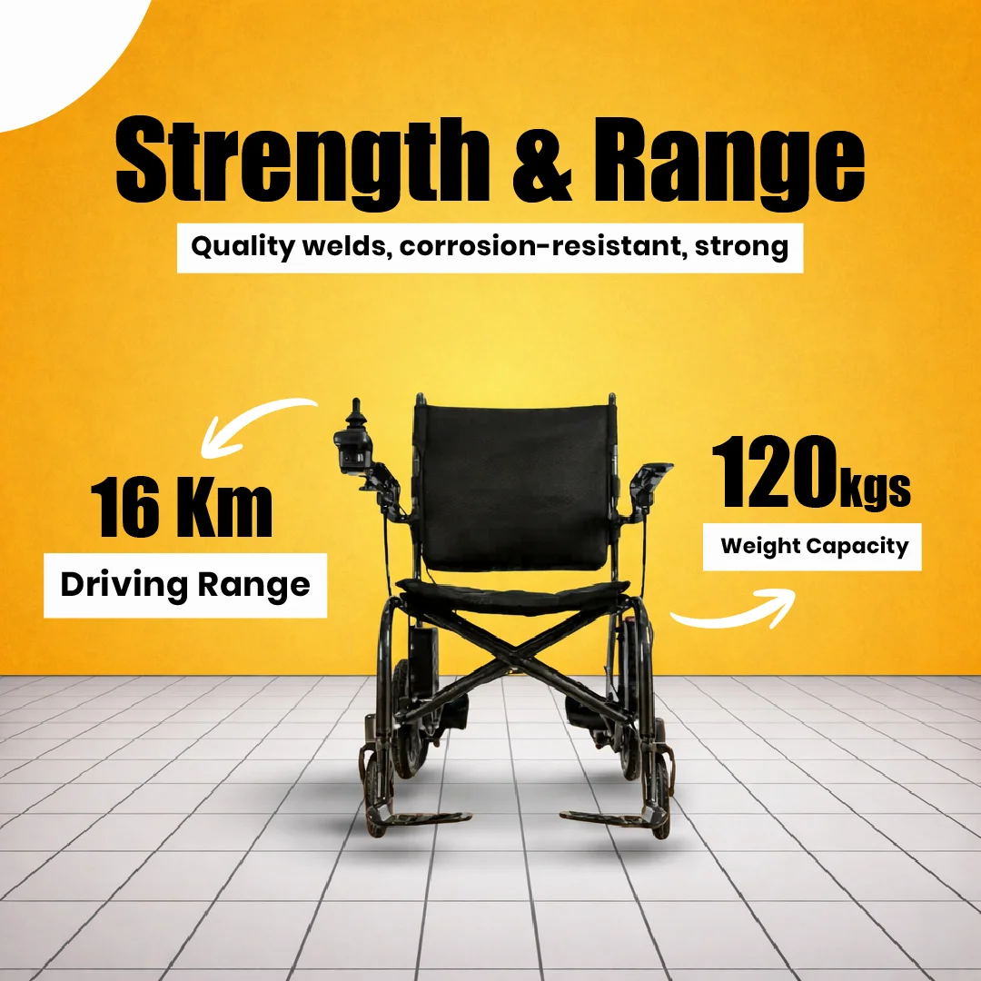 تتمتع هذه الكراسي المتحركة الكهربائية خفيفة الوزن بالقدرة على السفر بسهولة لمسافة تصل إلى 16 كم مع سرعة قصوى تبلغ 6 كم / ساعة لركوب سلس وآمن.