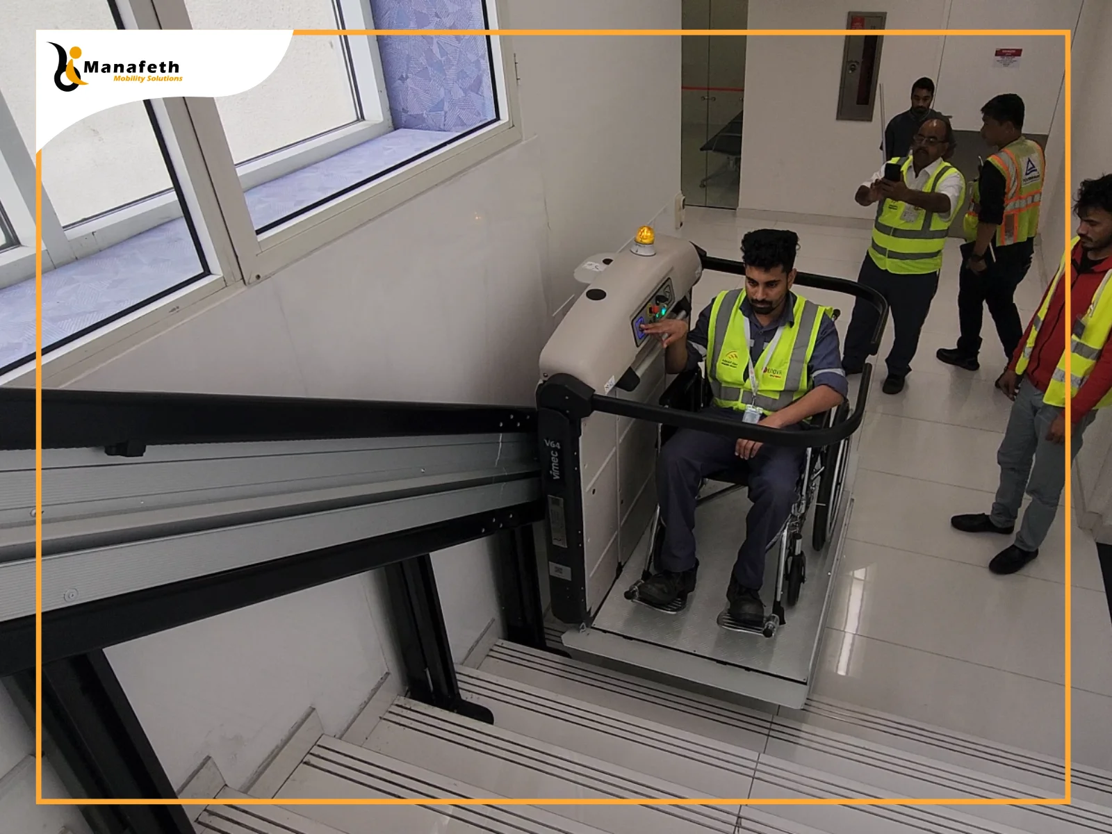 The moment they shared their concern, our experts understood their requirements. Our team visited the Airport ASAP and did a detailed analysis to ensure the right location. We recommended our platform lift as it is a space-efficient solution. The Airport management was impressed with the solution. After their approval, the Manafeth experts began the process of lift installation. Our team completed the entire process with minimal disruption to the daily operations of the airport. We made sure the Airport structure was not affected by the installation of the platform lift. Now, it becomes easier for seniors and people of determination to move freely between the different levels of the airport. The management appreciated Manafeth for quick services and for making the airport more inclusive. People there were also relieved with the installation of the platform lift.