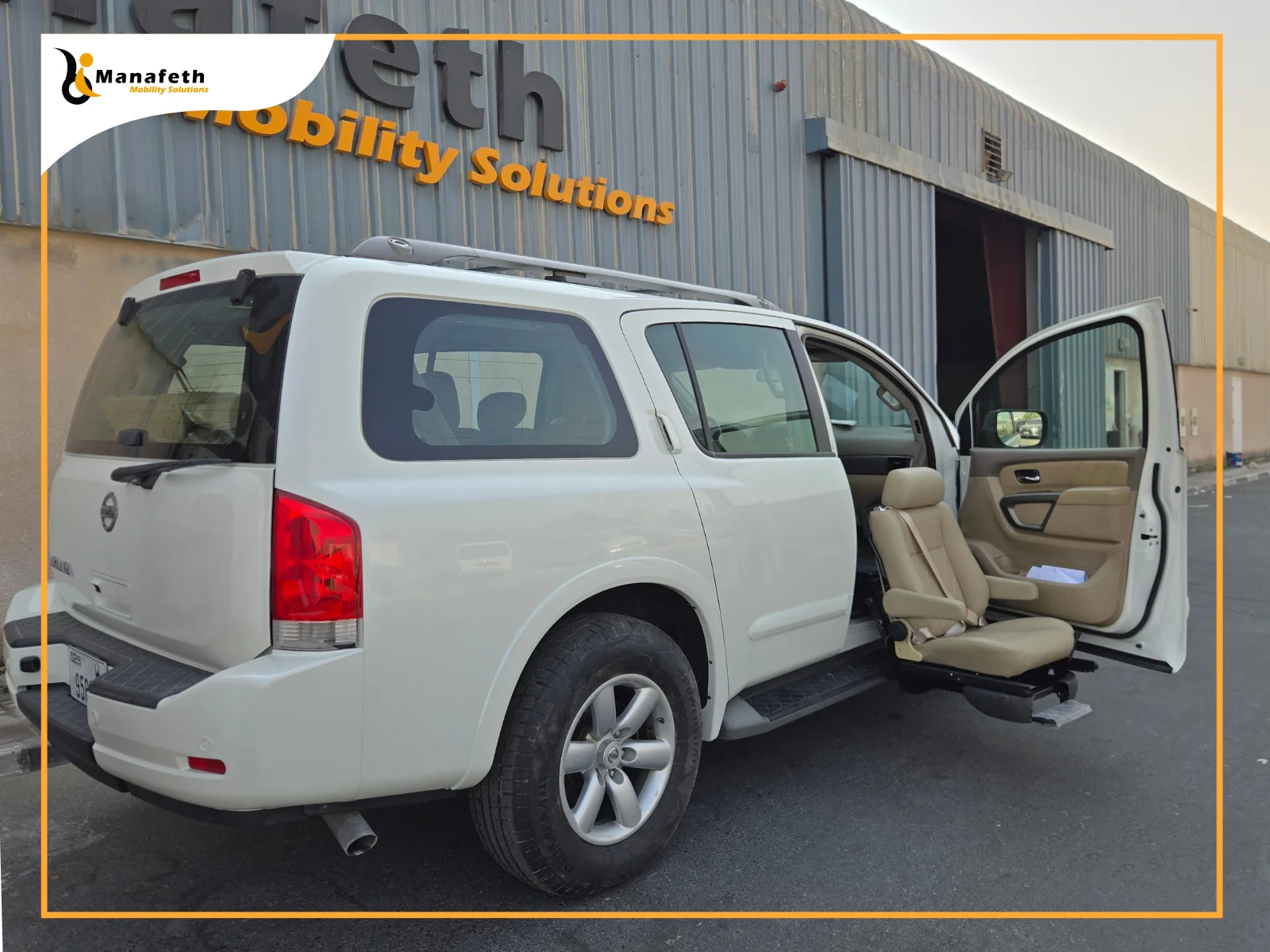 Last week, a high school teacher underwent knee surgery. During his recovery, he was completely dependent on a wheelchair and his family. Whenever he tried to sit in the SUV to go to school, he needed physical help from his family. It felt tiring and difficult for everyone. To overcome this, he contacted Manafeth Mobility Solutions for a safe solution. He shared his concern with our supportive team. Our professional team visited him immediately and did a full analysis of his Nissan Armada. In 3-4 hours, we fitted our fully powered swivel car seat in his full-size SUV without any major modifications. With this transfer seat, he was able to get in and out of his car independently. He was really pleased and thanked us for delivering straight to his home.