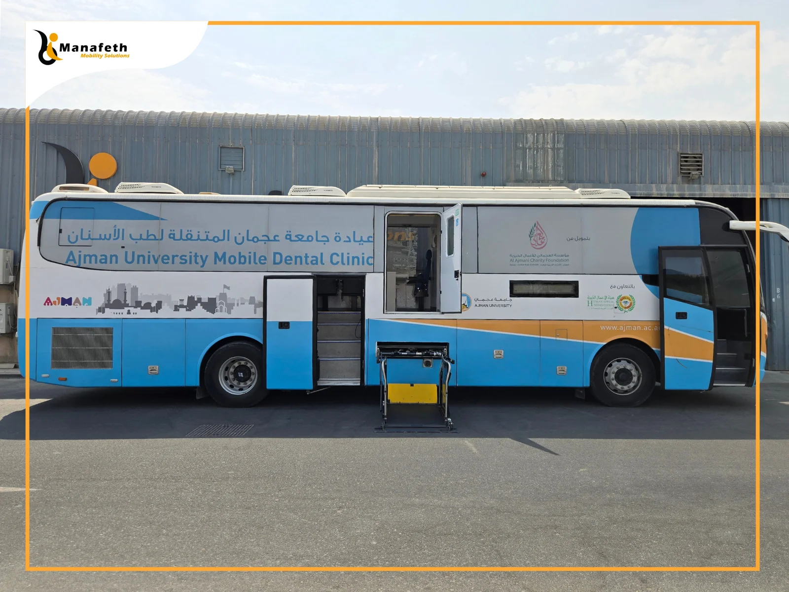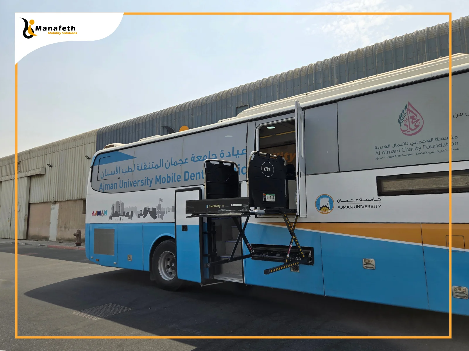 Ajman University is one of the top universities that is recognized globally for its academic excellence. Its dental clinic offers excellent dental care with a wide range of treatments. The dental clinic not only stands out for its treatments but also for providing secure transportation. They ensured every patient reached the clinic safely. But while transferring wheelchair users in and out of the vehicle, they face challenges. It was time-consuming and required extra help. The dental clinic started searching for a way to upgrade its Bus. While exploring other options, management found that other famous hospitals in Dubai have equipped their vehicles with reliable wheelchair lifts to facilitate the disabled. They have trusted only Manafeth Mobility Solutions for its service. Recently, the dental care unit reached out to us and shared its concern about transforming its bus. After listening to their requirement, we visited the dental clinic and did a free assessment of the bus. We evaluated the bus and recommended the installation of an Under-vehicle lift (UVL). After their approval, we installed an under-vehicle lift in the Bus efficiently. Our reliable UVL provides secure and automatic lifting from the ground to inside the vehicle. Our experts carefully carried out the entire process of installation within a few days. The Dental Clinic of Ajman University was highly impressed and grateful for our quick and professional services.