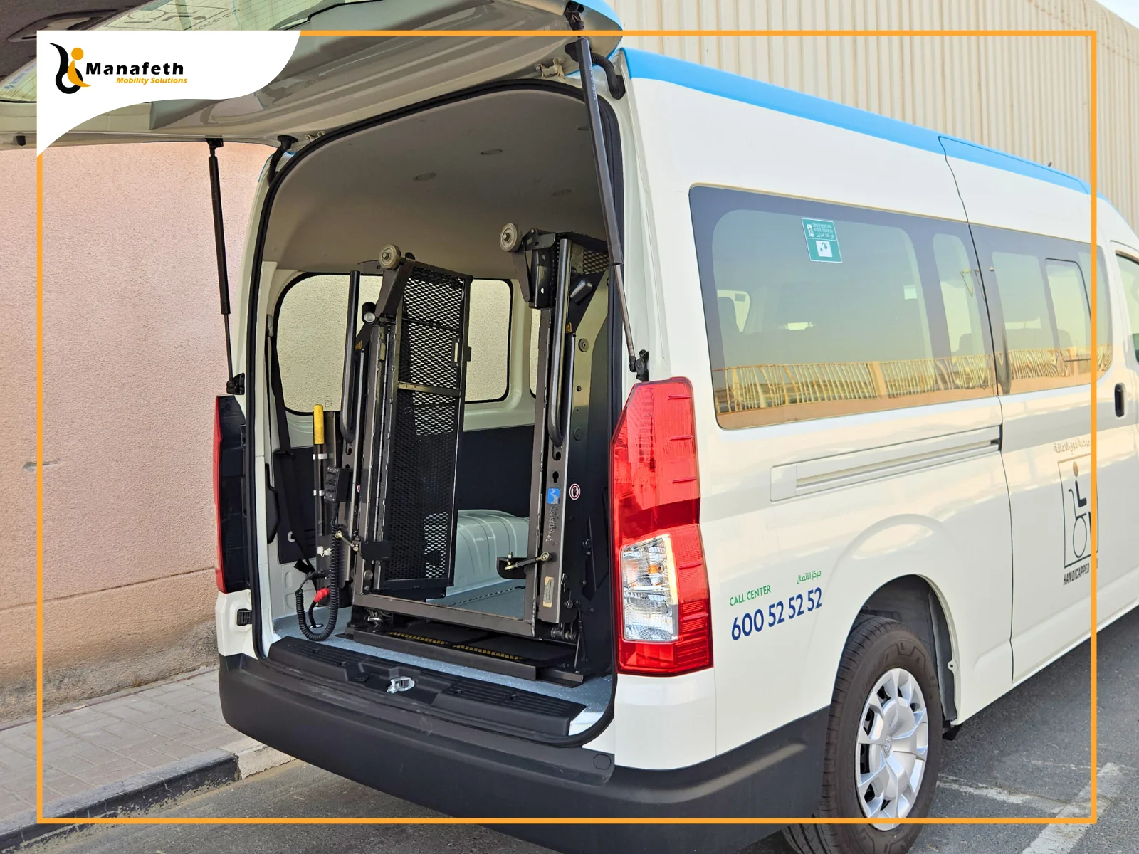 Recently, the professional team of Manafeth Mobility Solutions installed Wheelchair lifts in a Toyota Hiace for Sharjah Taxi.