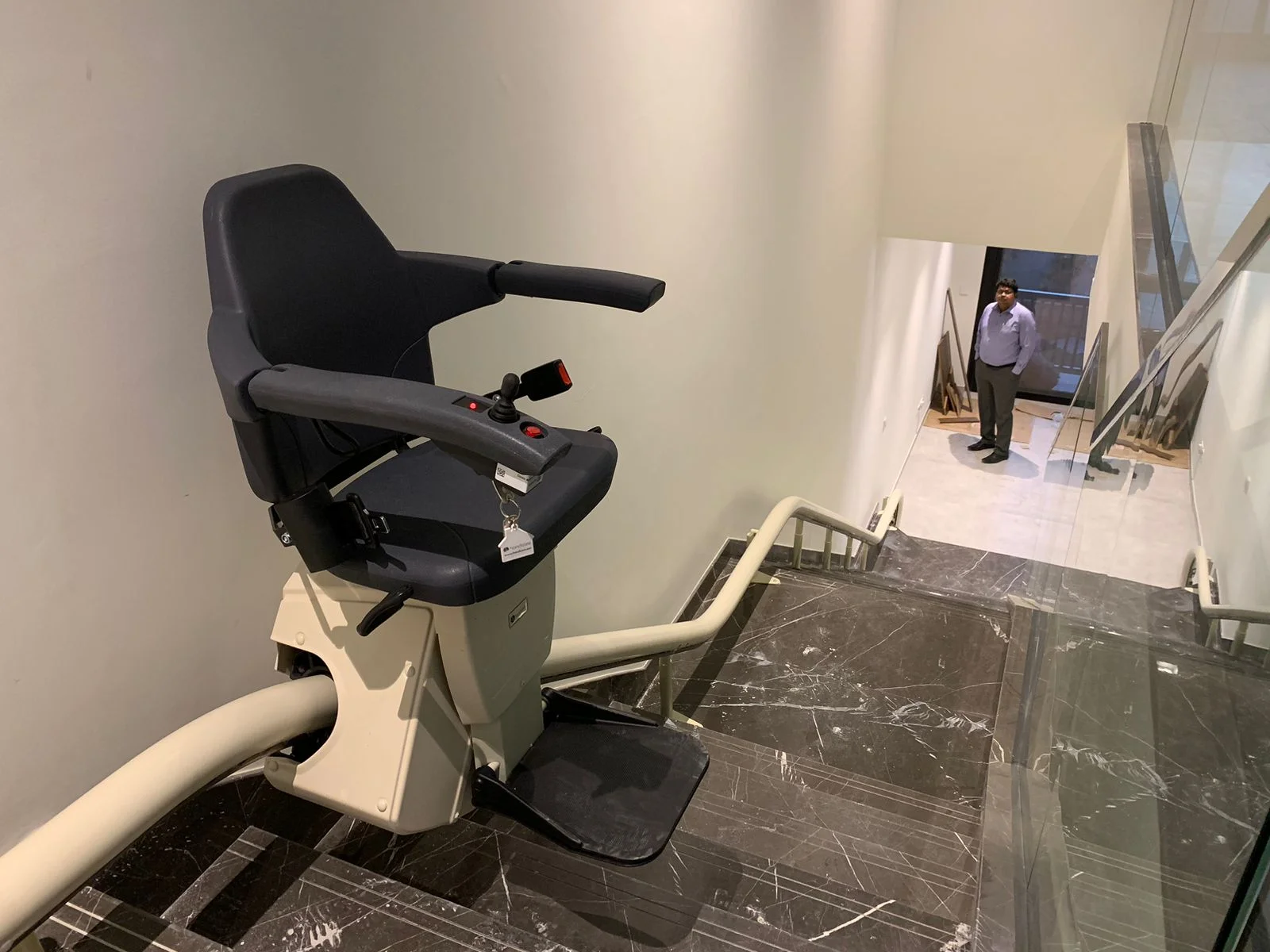 Our Curved Stairlift for the elderly installed at AL-Furjan, Dubai, provides safe access to multiple floors. The curved stair lift from Manafeth Mobility Solutions is available at an amazing sale price. Buy it now before this sale ends.