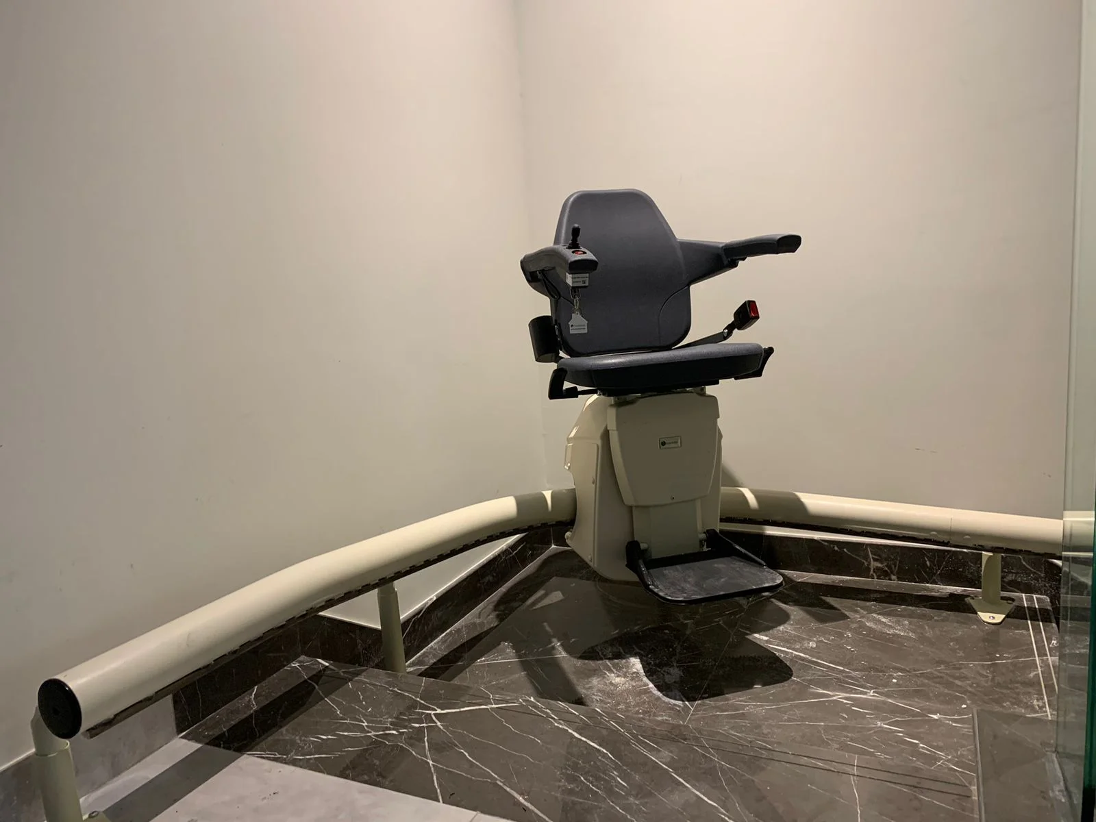 The curved stairlift at AL-Furjan Dubai accommodates users up to 125 kg.