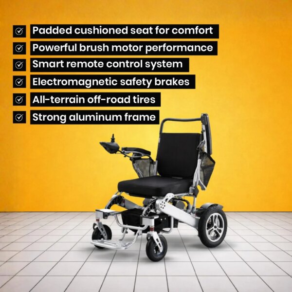 - Advanced Control: This wheelchair foldable is equipped with unparalleled precision and a controlling system. People with disabilities can easily manage their folding wheelchair with simple, user-friendly remote control.