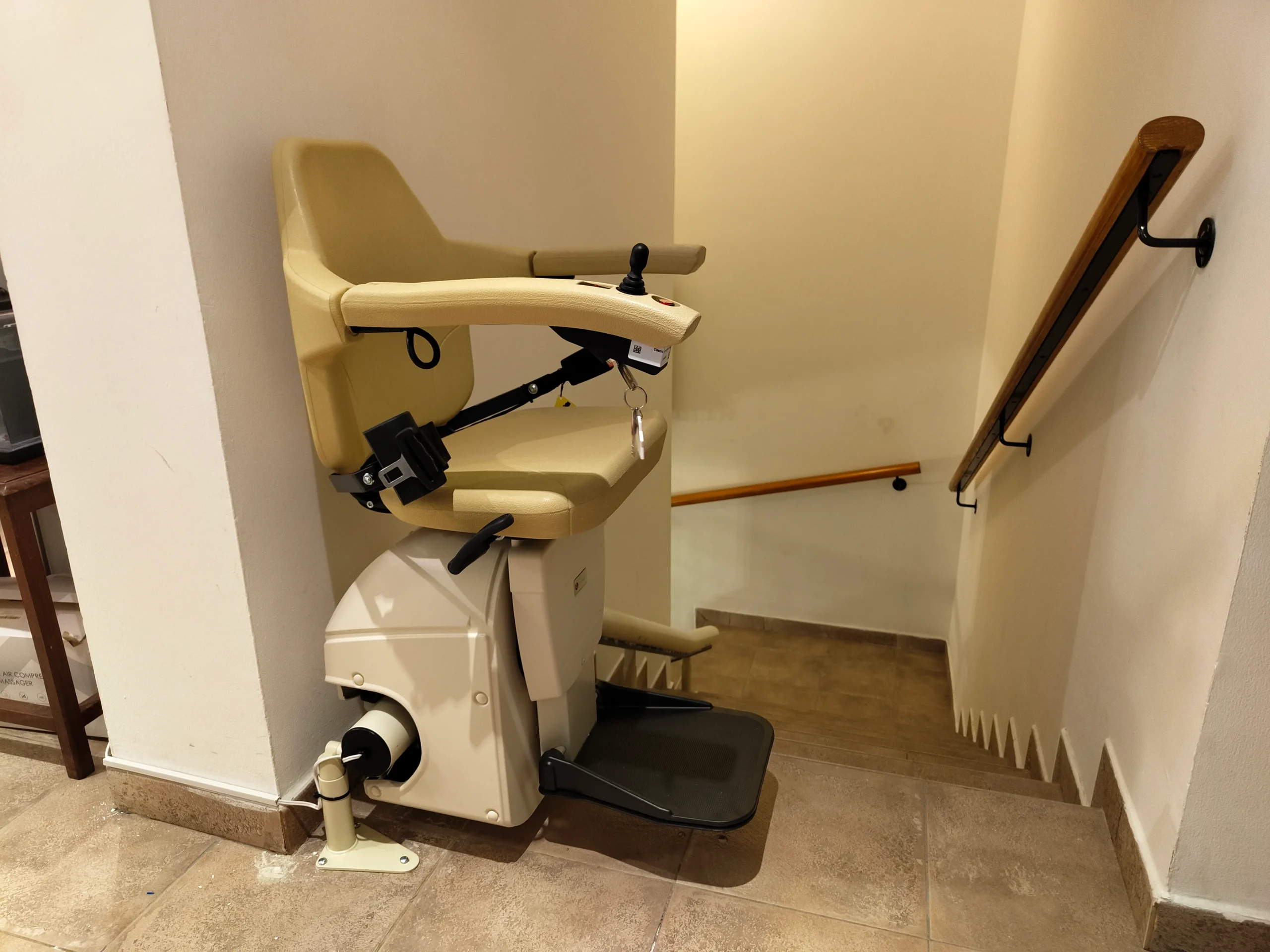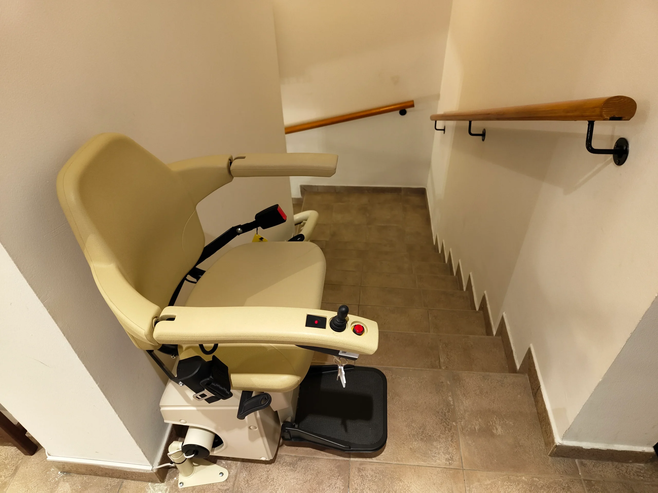 Our freecurve curved chairlift features a battery backup system that keeps the lift working during a complete electricity outage.