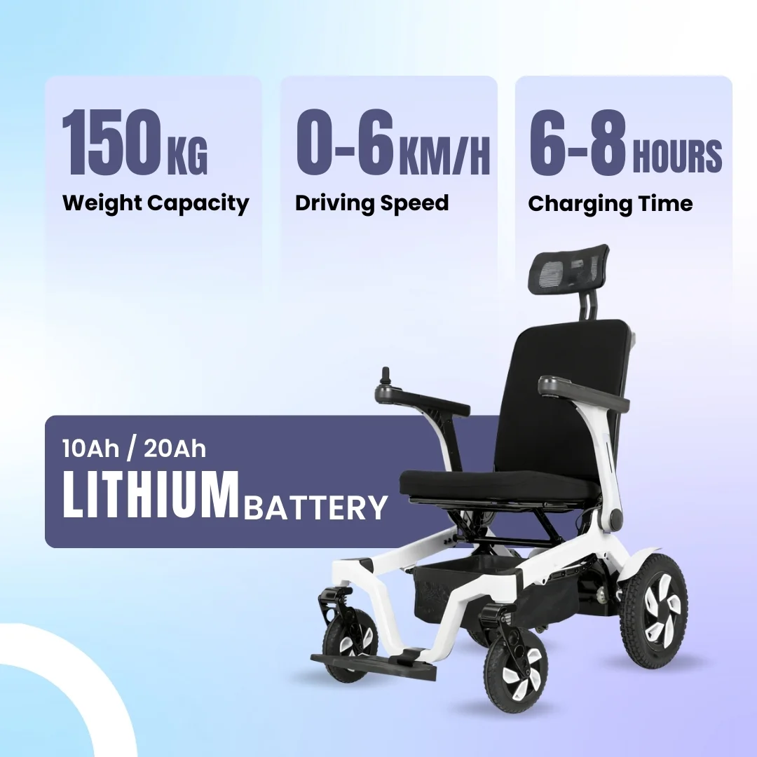 The Super electric wheelchair is equipped with a powerful lithium battery, which is easy to attach and remove.