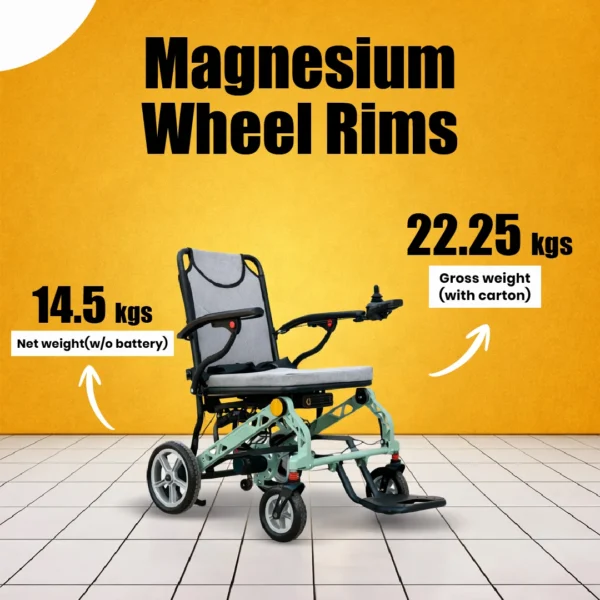 Our magnesium wheelchair power has dual brushless motors that deliver efficient and reliable performance for everyday mobility.