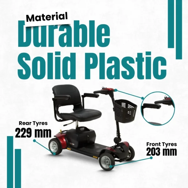 - Durable Material for Longevity: This Pride Go Go Elite Traveller Plus mobility scooter is made of durable solid plastic to withstand daily use and last for years.