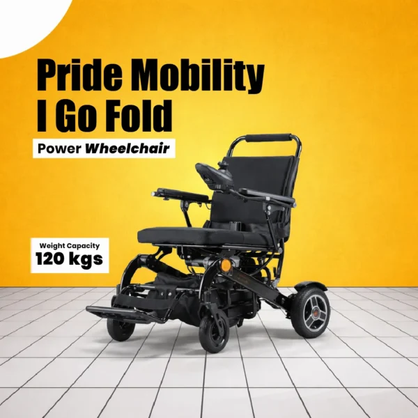 Our Pride igo folding power wheelchair is a lightweight folding power wheelchair with anti-tip wheels that provide great comfort to patients, seniors, and the disabled. This IGo wheelchair provides effortless drive with remote control operation, adjustable footrests, and long battery life for indoor use and outdoor travel.