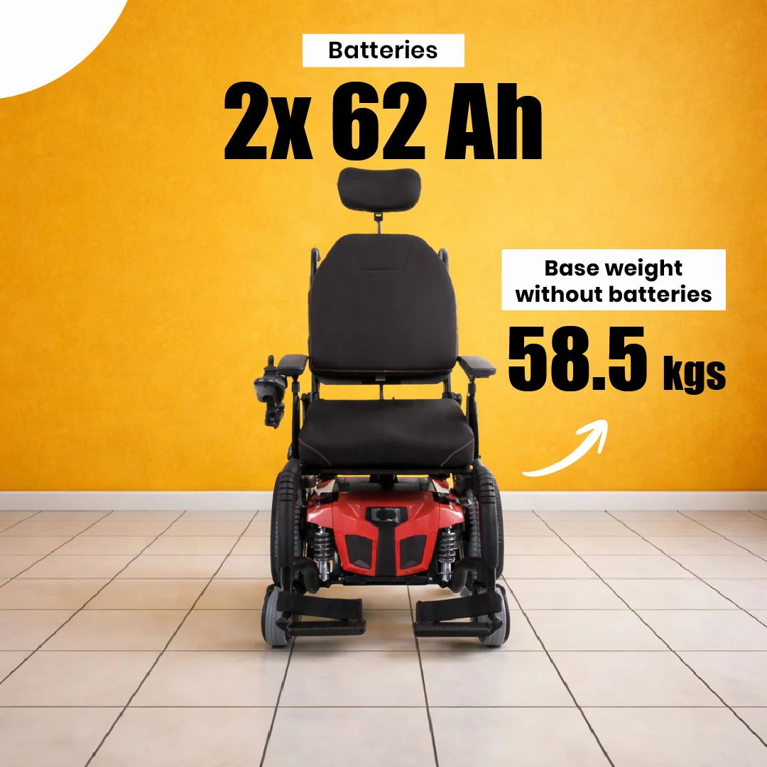 The Quantum power chair is equipped with dual 64AH batteries, delivering long-lasting performance during long use.