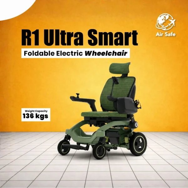 The first leisure-mode power wheelchair, R1 Ultra Smart Wheelchair, is now at Manafeth Mobility Solutions. Our ultra-lightweight power wheelchair has a sleek design that folds quickly to a compact size, making it ideal for everyday use. Our airline-safe electric wheelchair ensures smooth, safe movement in tight spaces.
