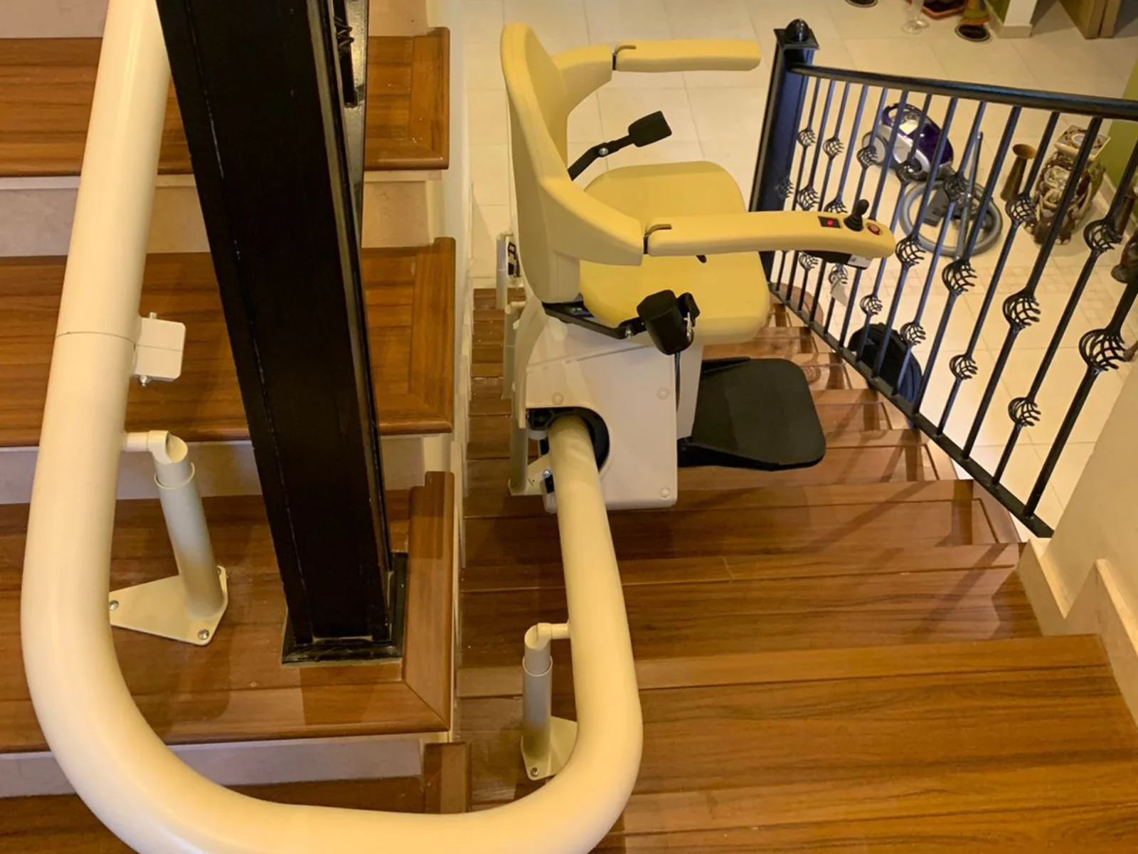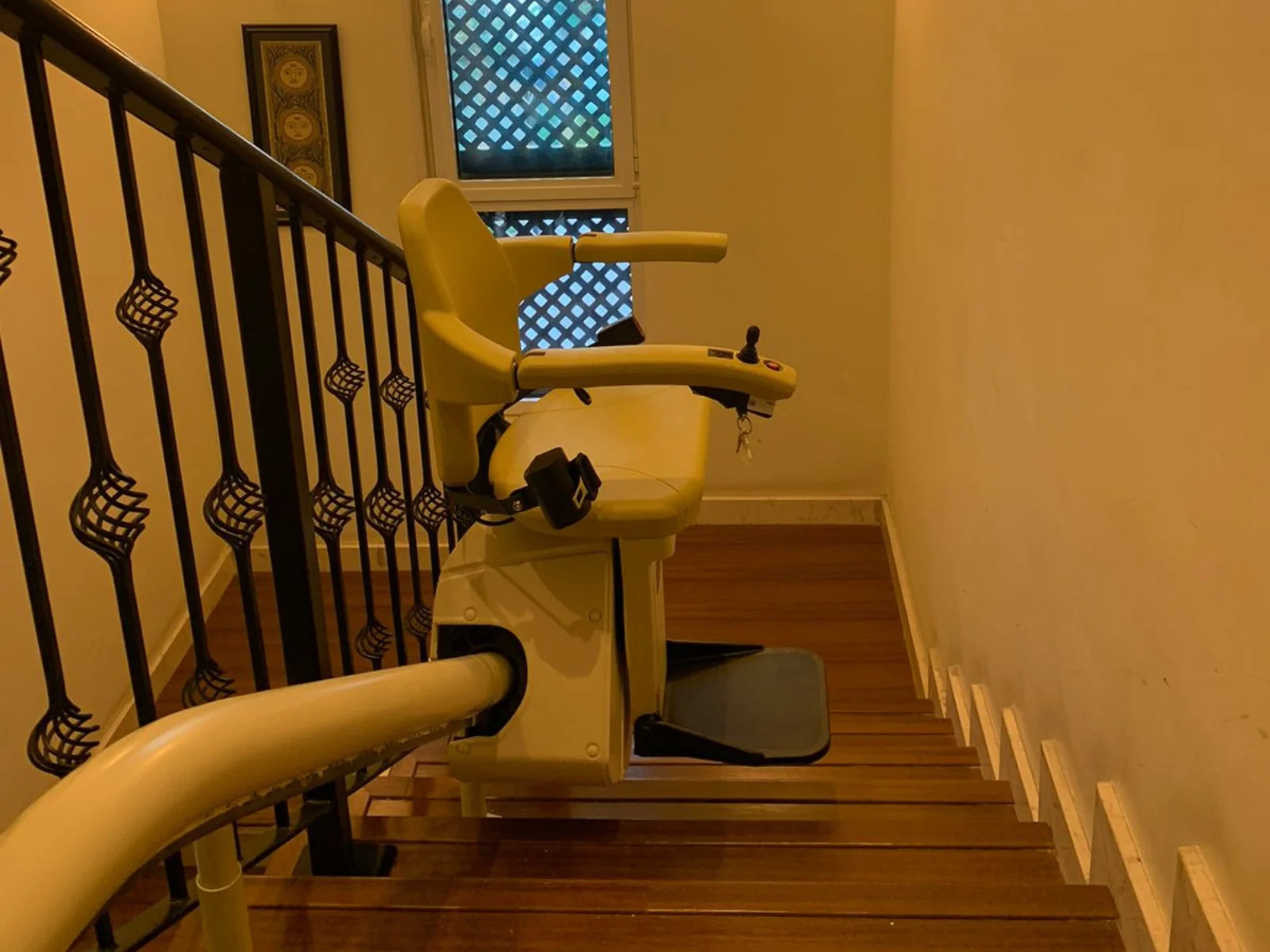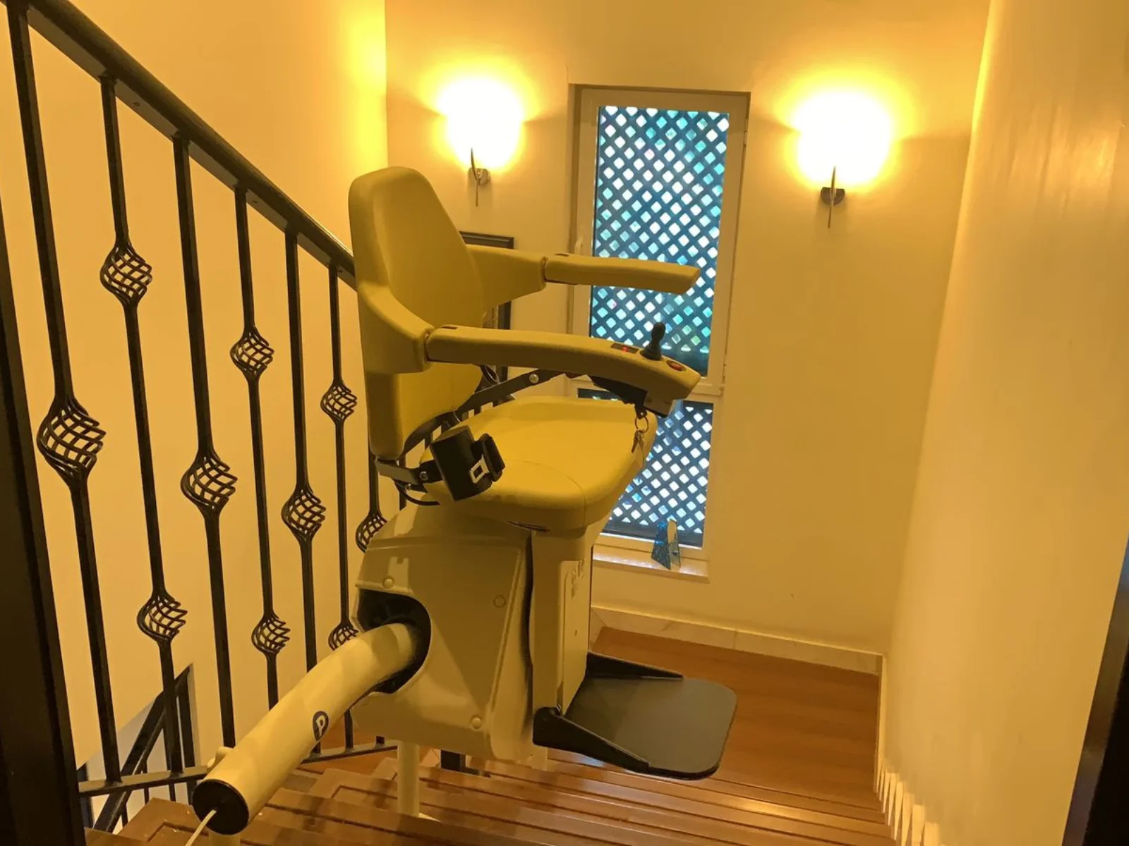 The Stairlift for Curved Stairs installed in Bluewater Island, Dubai, is an ideal solution for climbing stairs safely. Our curved chairlift for stairs is available for sale. It is fully powered and easy to operate.